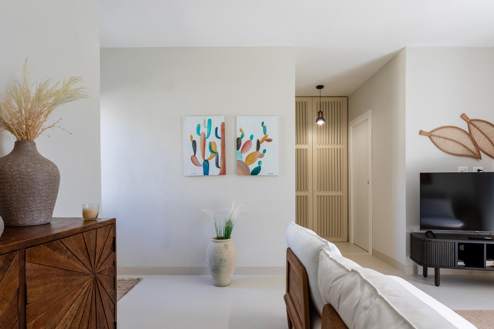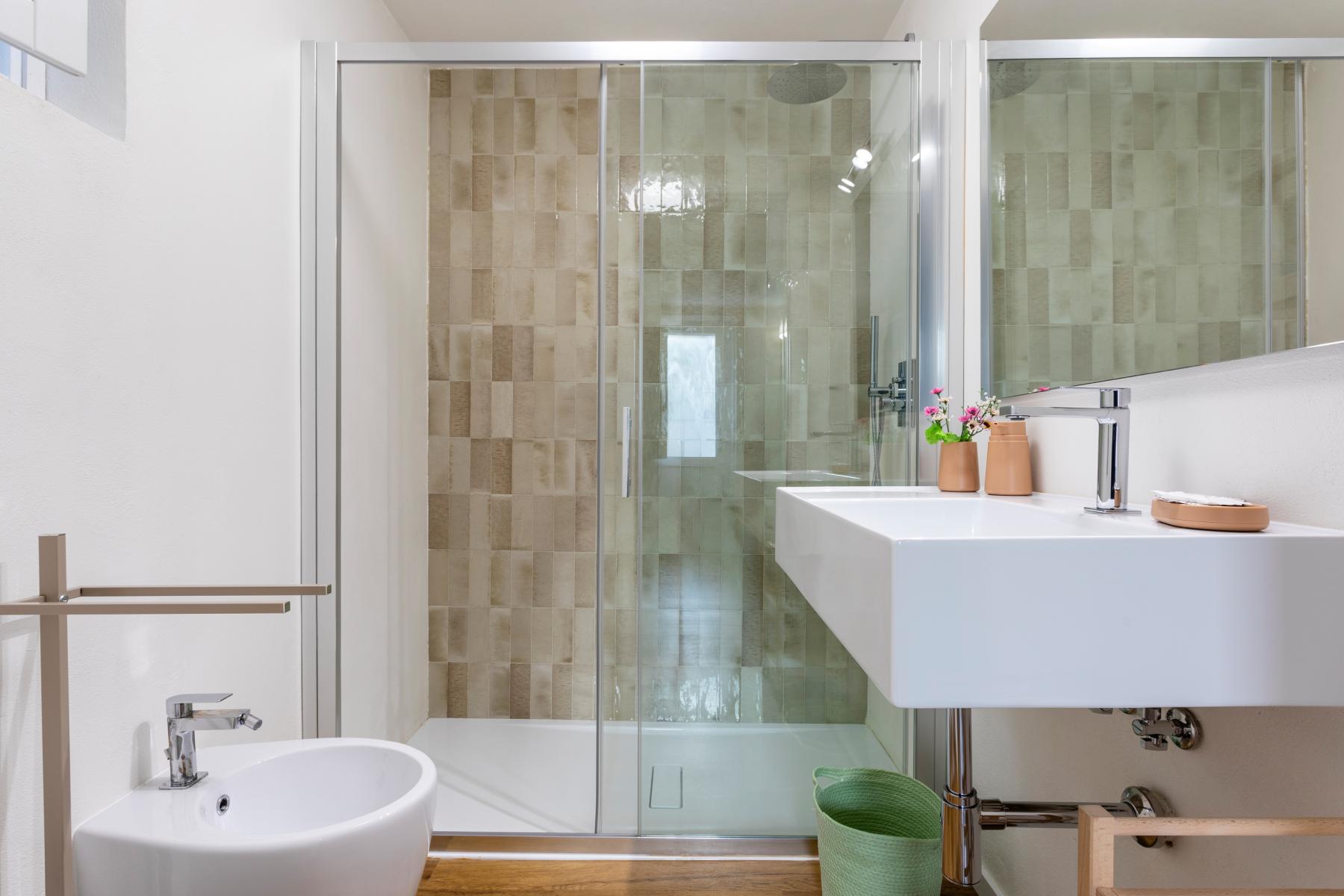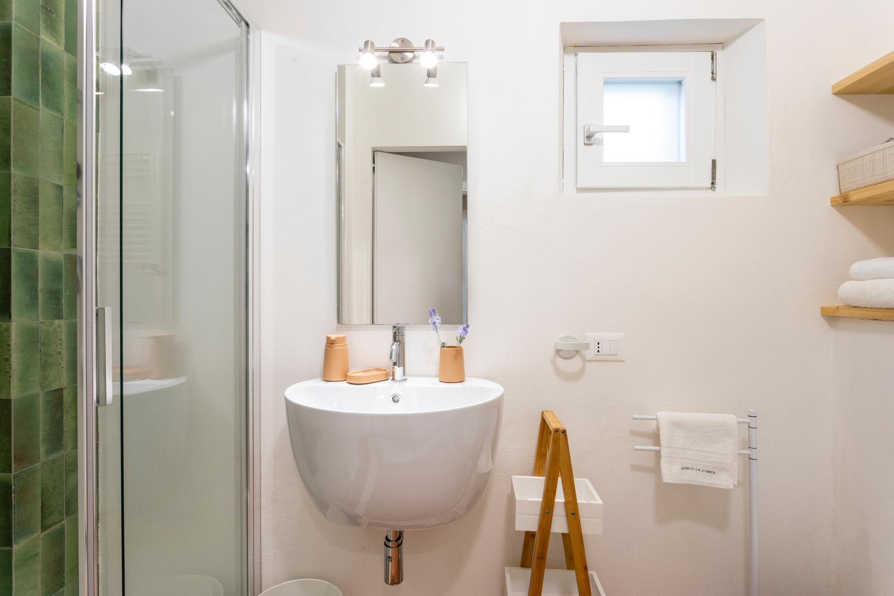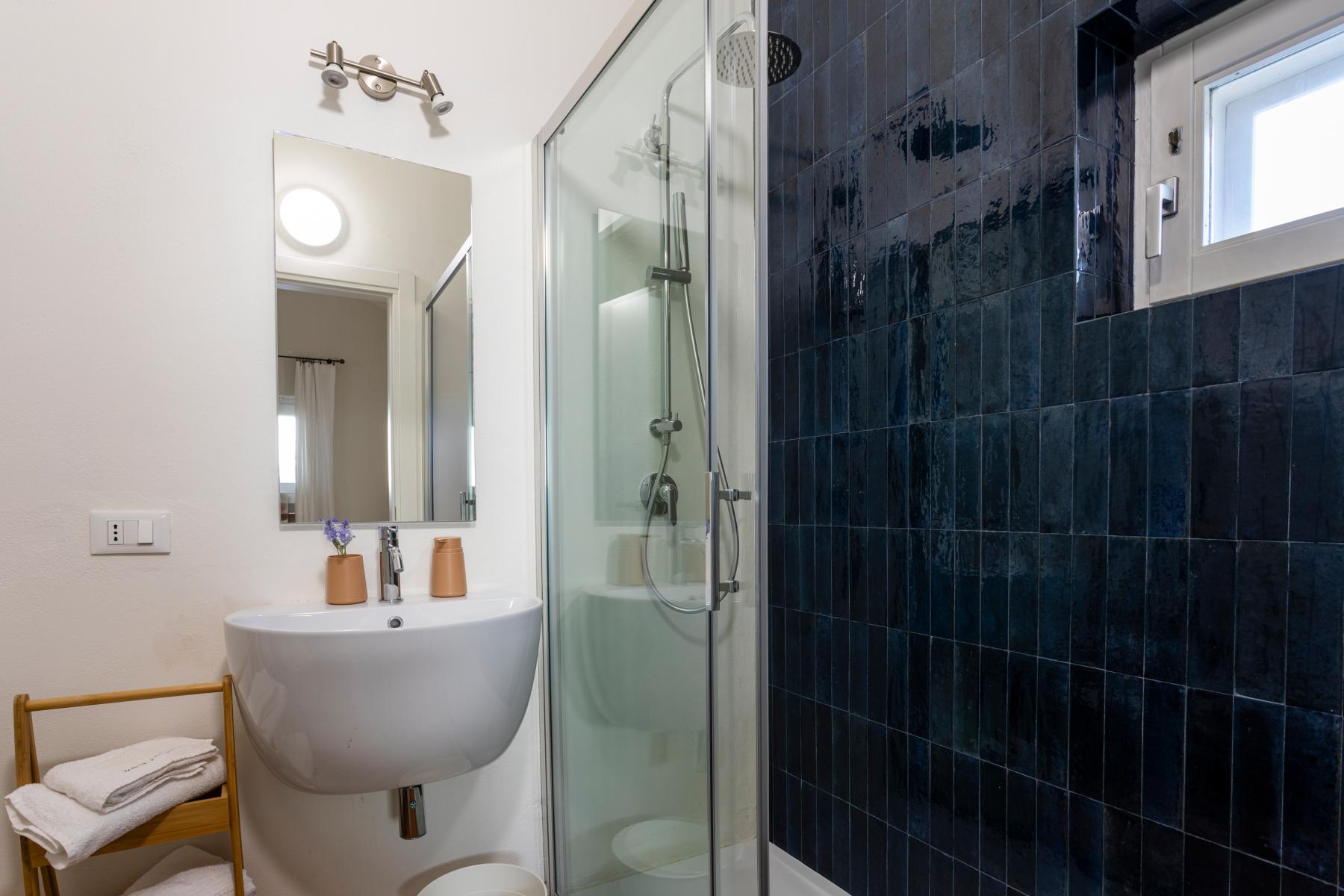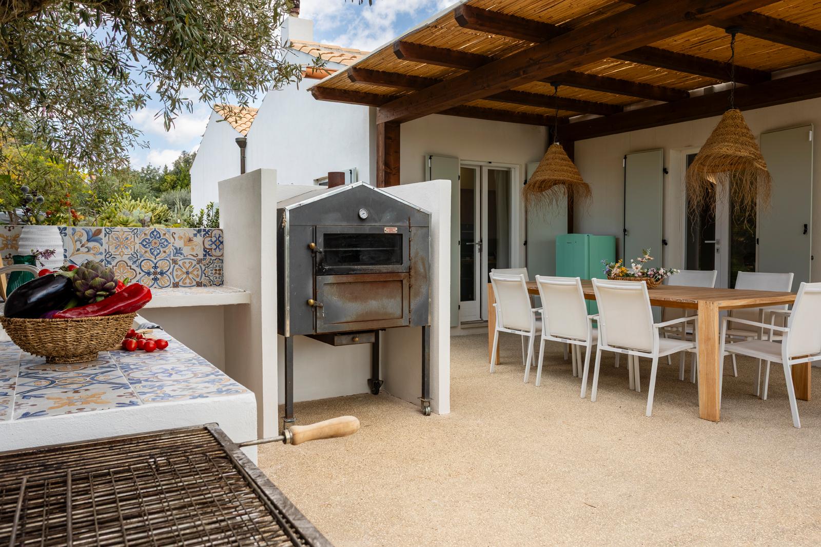 Nell'edificio principale, oltre alla luminosa cucina e al soggiorno, ci sono 3 camere matrimoniali, tutte con bagno privato, 2 delle quali con un divano letto aggiuntivo. Due camere da letto sono al piano terra mentre una è al primo piano. La dependance ha un ingresso su un piccolo soggiorno con angolo cottura e divano letto, mentre una scala in legno conduce al soppalco, con un letto matrimoniale e un letto singolo. La dependance ha anche un bagno privato. Considerando i posti aggiuntivi, la villa può ospitare fino a 12 persone.