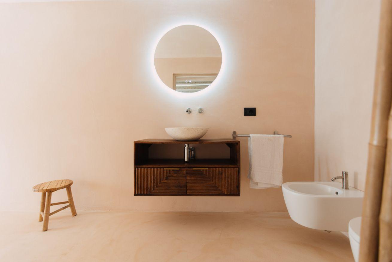 Una delle suite con una vasca molto grande in muratura affacciata sul patio.