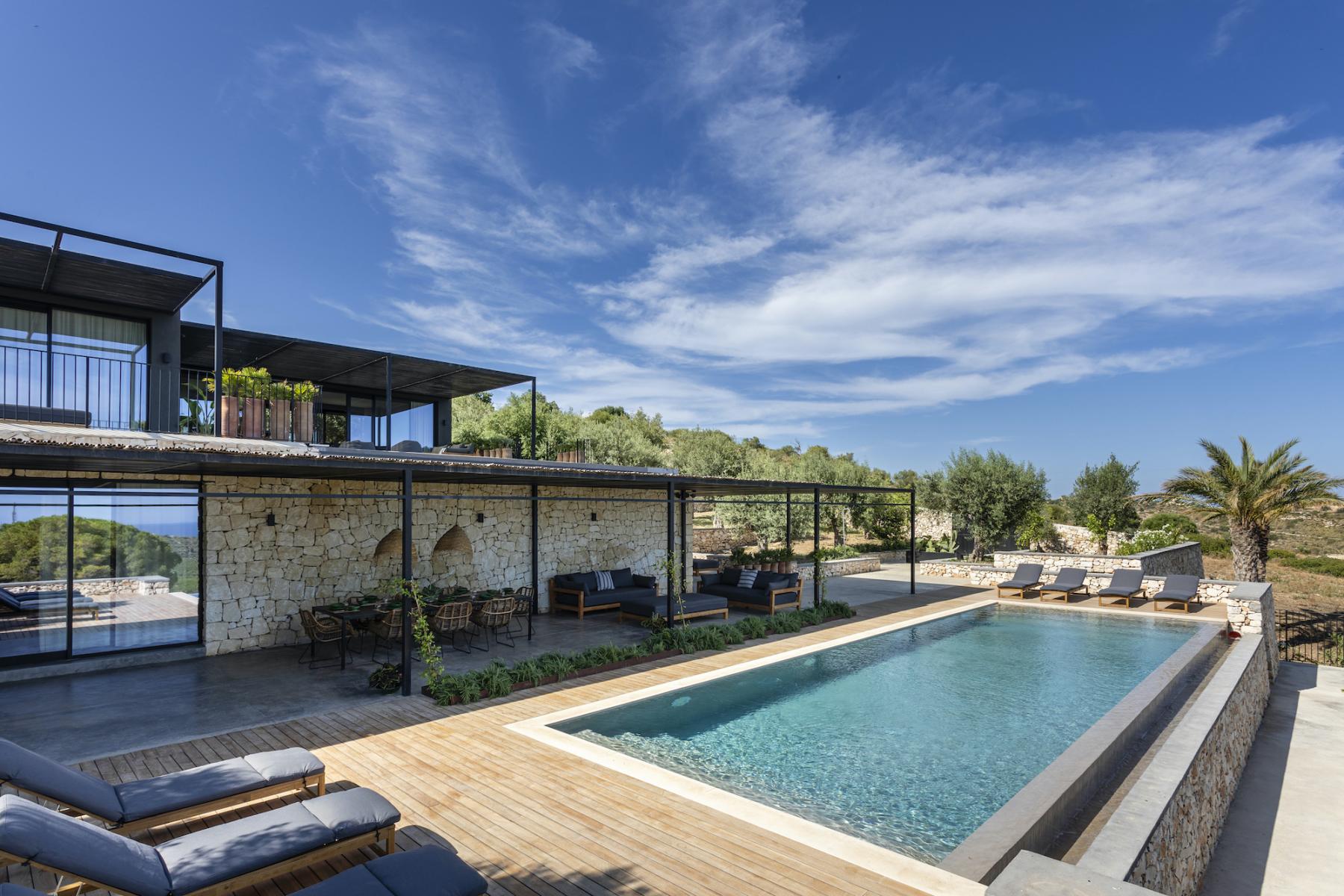 La villa è completata da 2 spettacolari piscine panoramiche a sfioro (una al piano terra di 60mq e una al primo piano di 27mq).